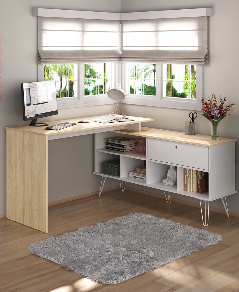 Escrivaninha de Canto Trend – Olmo com Branco – Home Office