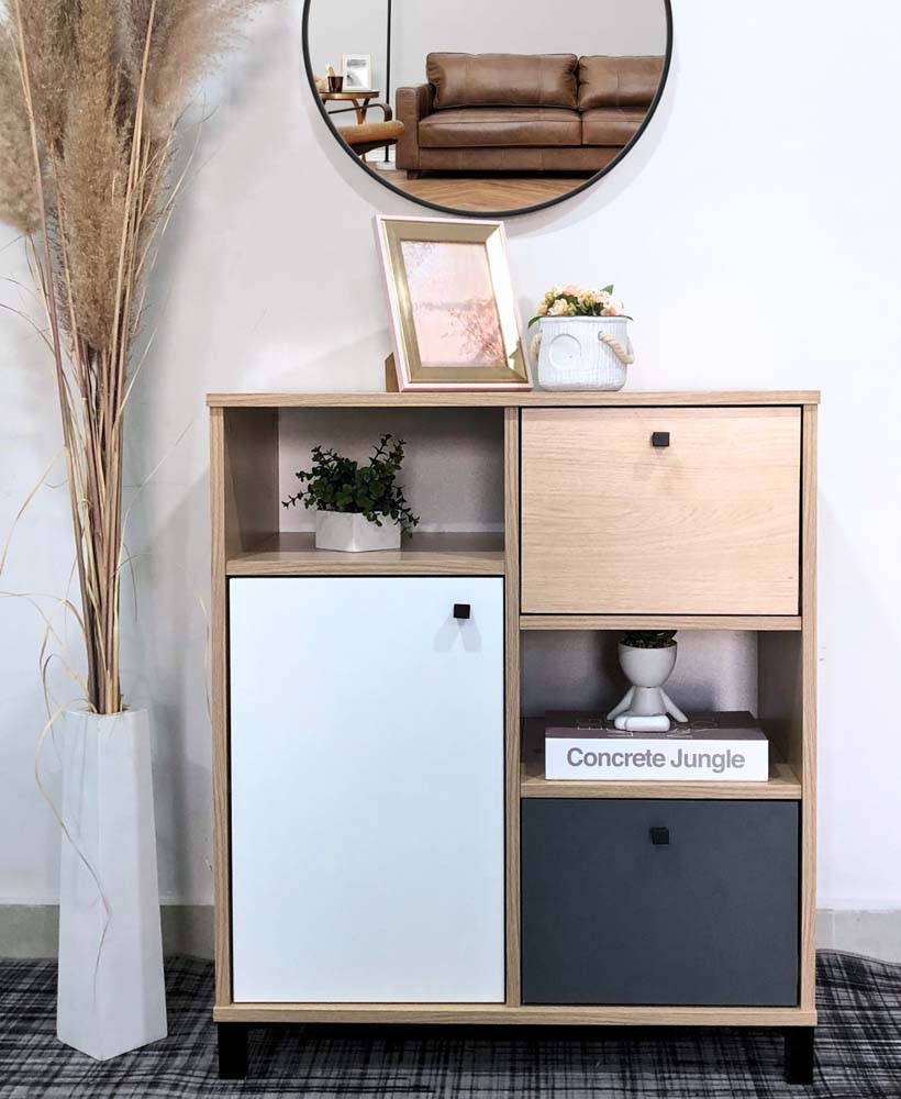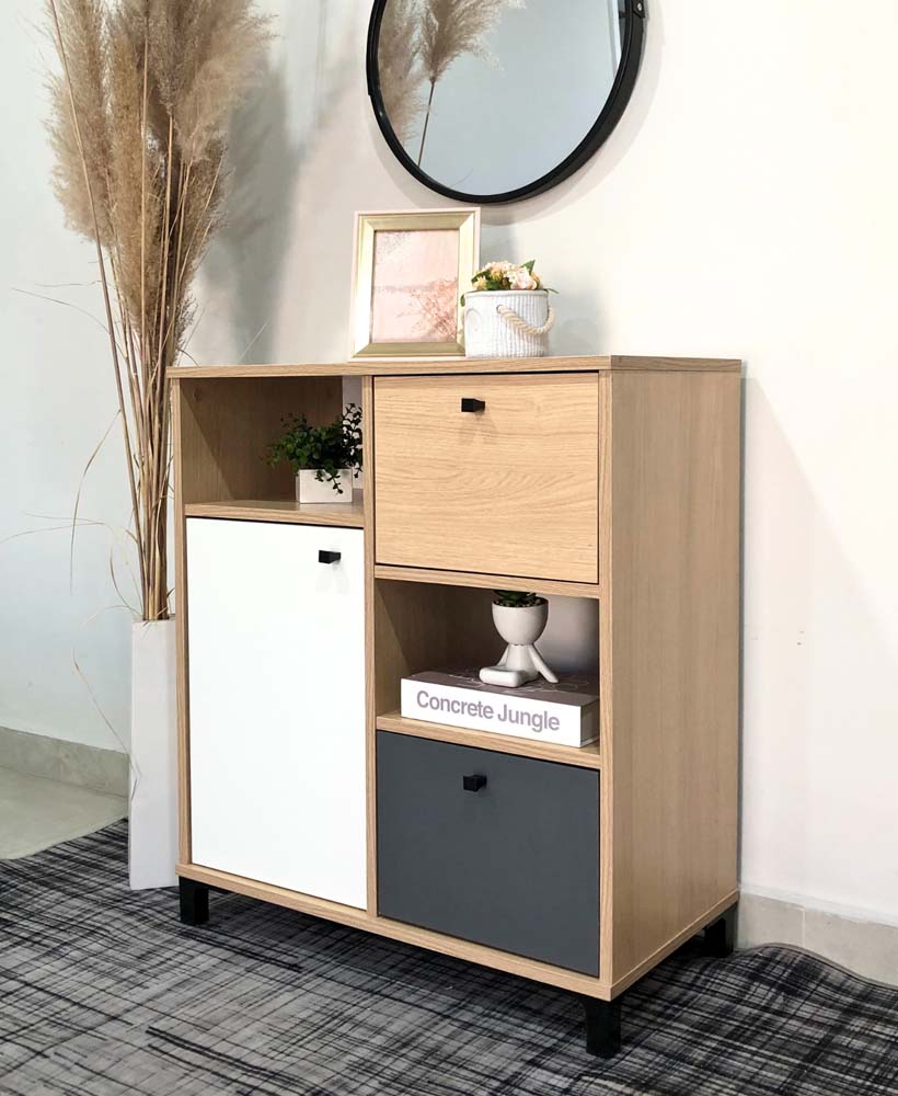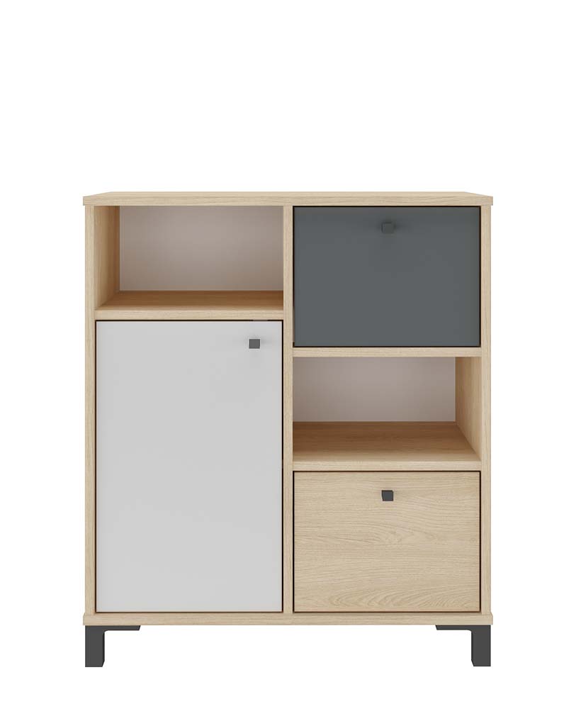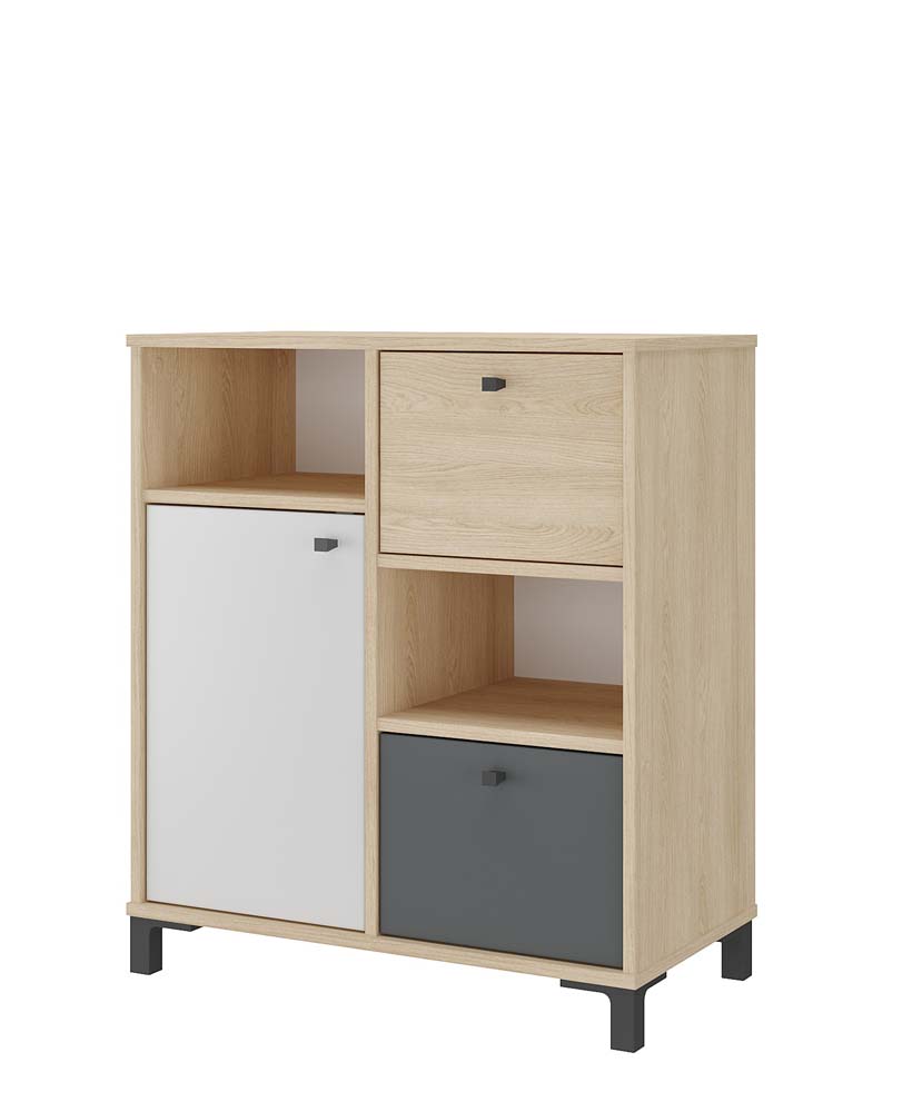 Balcão 02 Gavetões e 01 Porta – Nordik – Cor Carvalho/Branco/Grafite – Home Office