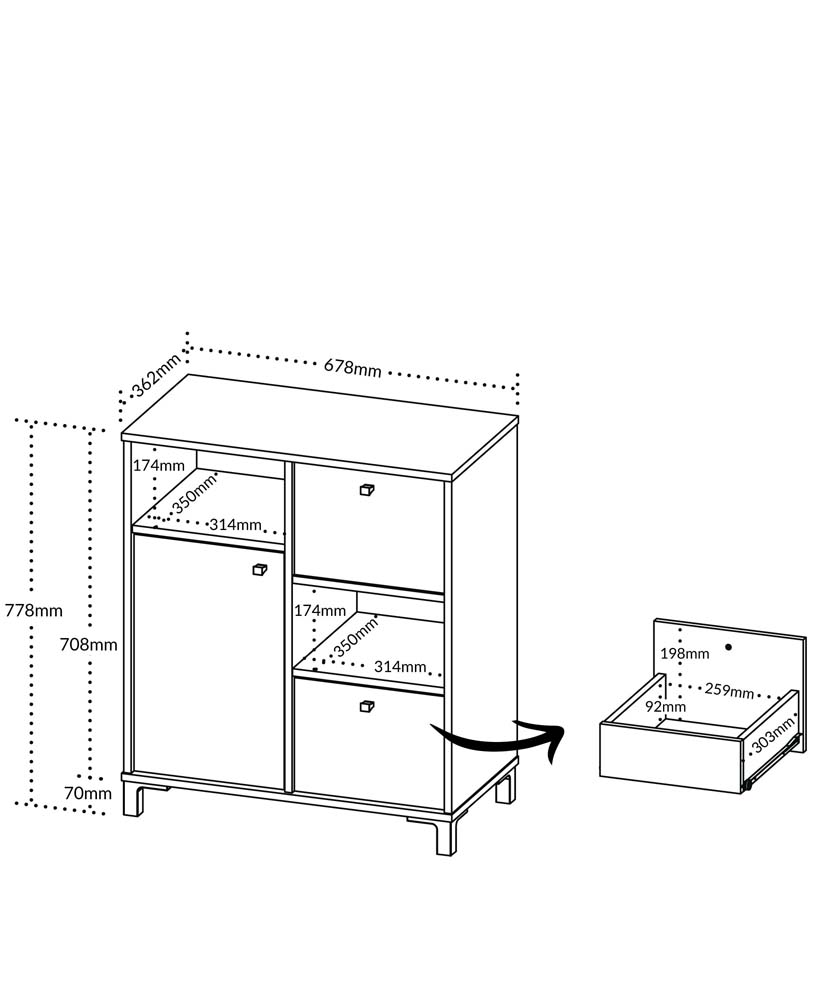 Medida Total:Altura: 77,8 cm / Largura: 67,8 cm / Profundidade: 36,2 cm