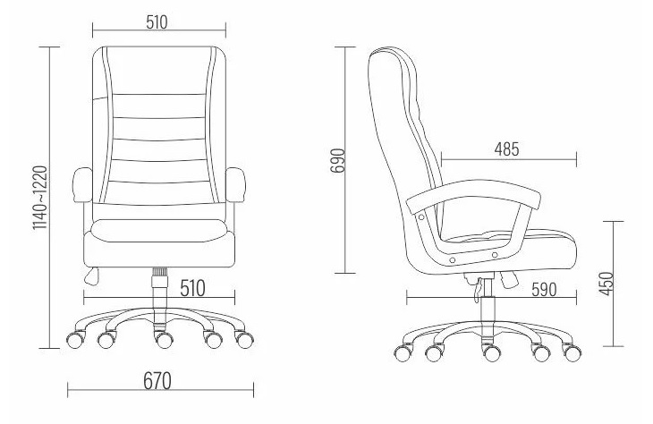 Cadeira Presidente Pollux, Super estofada, mecanismo Relax, com Braço Fixo Cromado