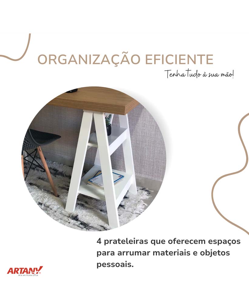 Organize seu espaço de estudo, trabalho ou lazer com a Escrivaninha Art, a combinação perfeita da Artany entre versatilidade, utilidade e beleza! Ideal como escrivaninha ou penteadeira, ela transforma seu ambiente em um local prático, único e encantador.