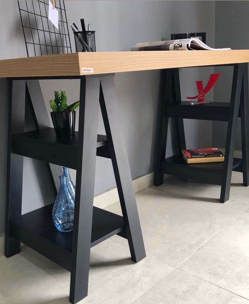 - Pés dos cavaletes em MDP 25mm com fita de borda PVC com 0,45mm de espessura;