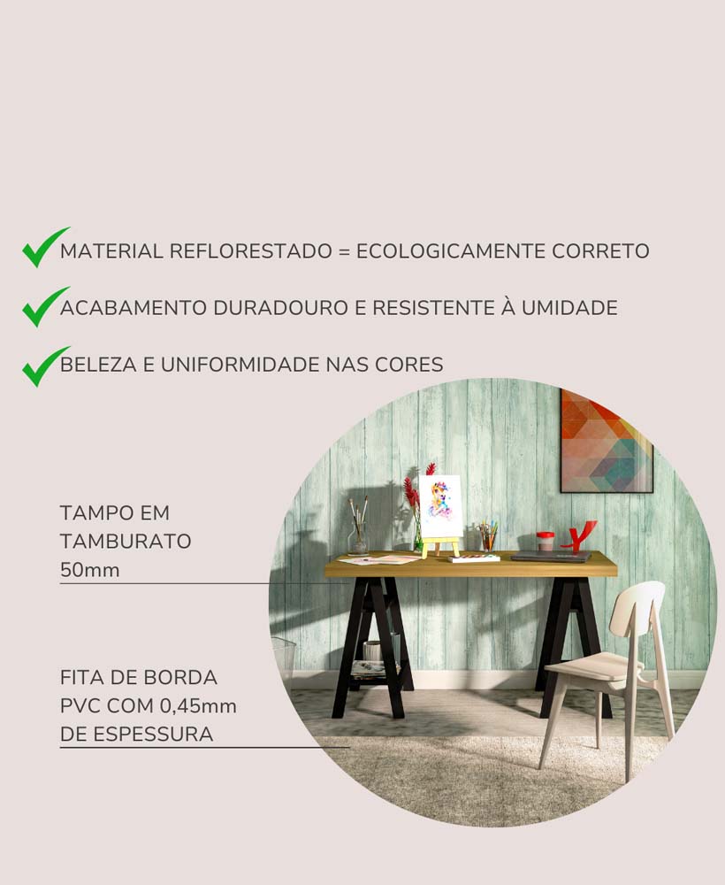 - Tampo em Tamburato 50mm com fita de borda PVC com 1mm de espessura;