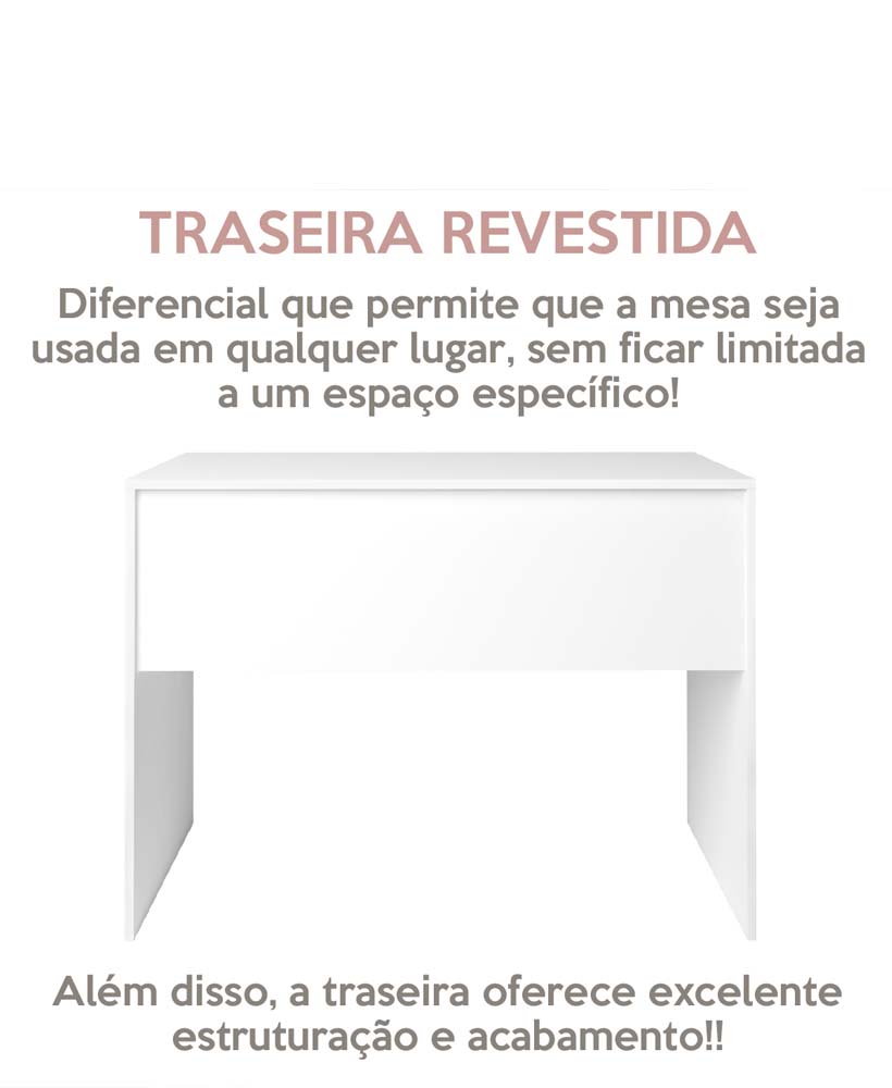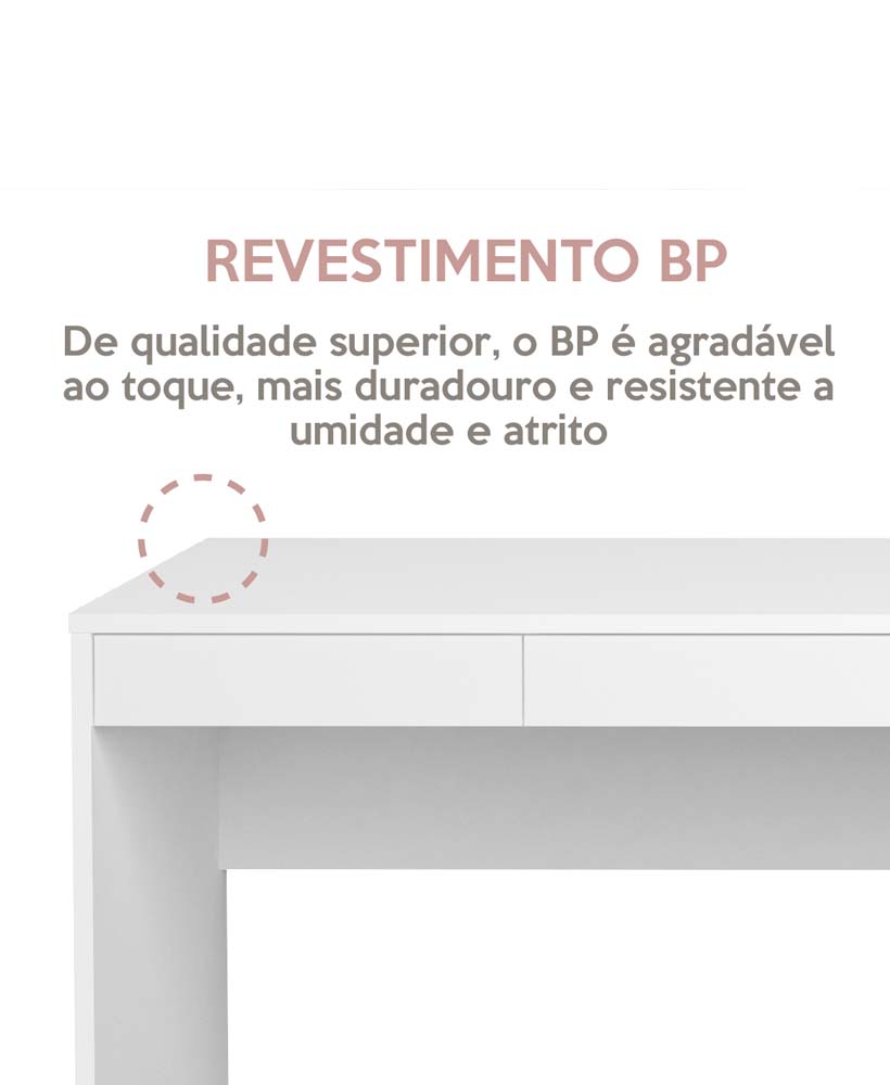 Uma das principais vantagens da Escrivaninha College é sua incrível versatilidade. Ela se adapta a qualquer ambiente, servindo como mesa para estudos, trabalho, jogos ou até mesmo como suporte para projetos artesanais como costura, pintura e desenho, e também como escrivaninha infantil ou penteadeira. Deixe sua criatividade fluir e aproveite ao máximo cada possibilidade!