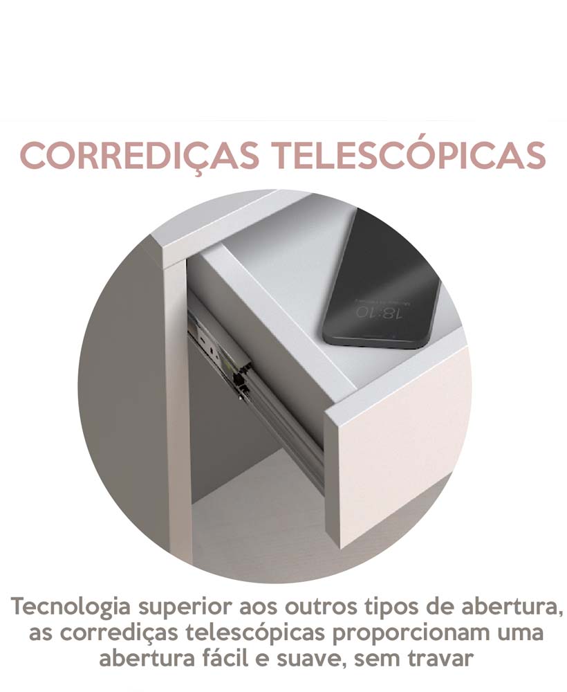 Transforme seu ambiente de estudo, trabalho ou lazer com a Escrivaninha College da Artany, a combinação perfeita de versatilidade, funcionalidade e estética! Este produto é ideal tanto como escrivaninha quanto como penteadeira, trazendo beleza e organização ao seu espaço, tornando-o prático e único.
