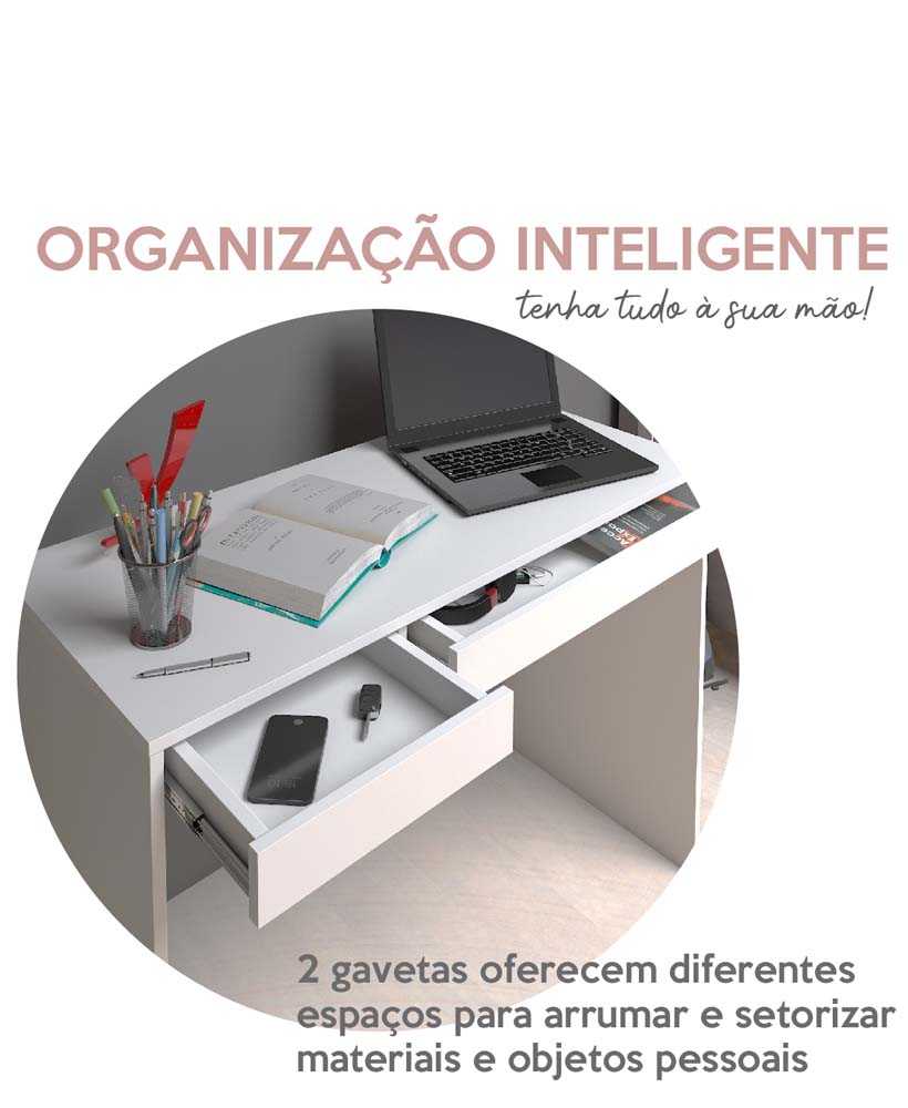 Escrivaninha College 02 Gavetas - Branco - Home Office