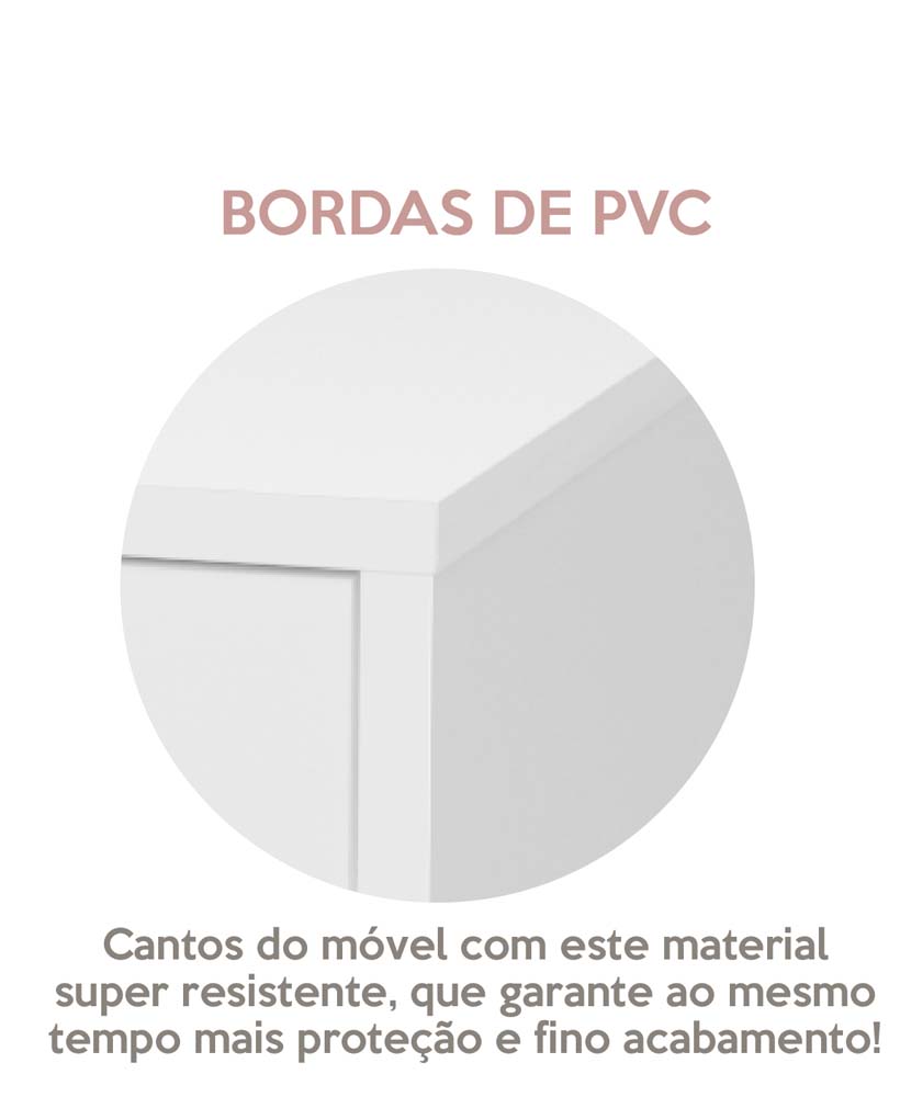 - Estrutura em MDP 15mm com fita de borda PVC com 0,45mm de espessura;
