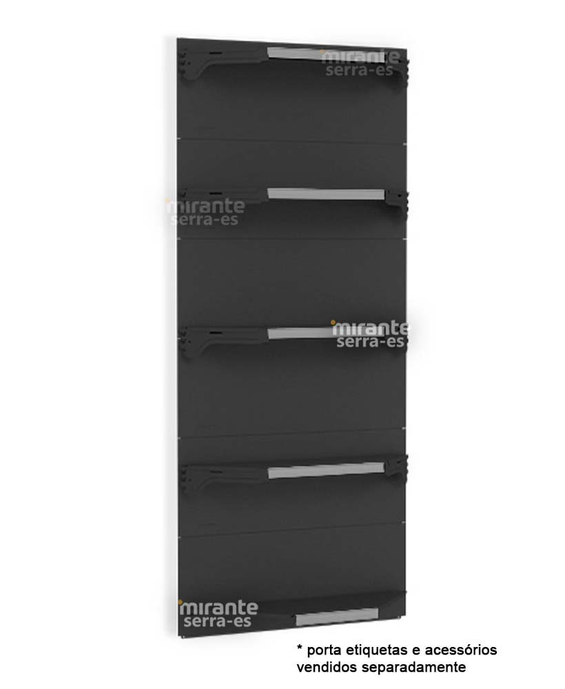 Ideal para comerciantes de pequeno e médio porte que desejem aproveitar todo o espaço da loja, inclusive os cantos das paredes. É facilmente instalada devido ao sistema de montagem por encaixe, sem uso de parafusos. Possui travador de parede, item obrigatório para uma instalação com segurança. Muito utilizada em mercados, mercearias, farmácias, papelarias, lojas de utilidades e outros negócios. O número de bandejas varia de acordo com altura.