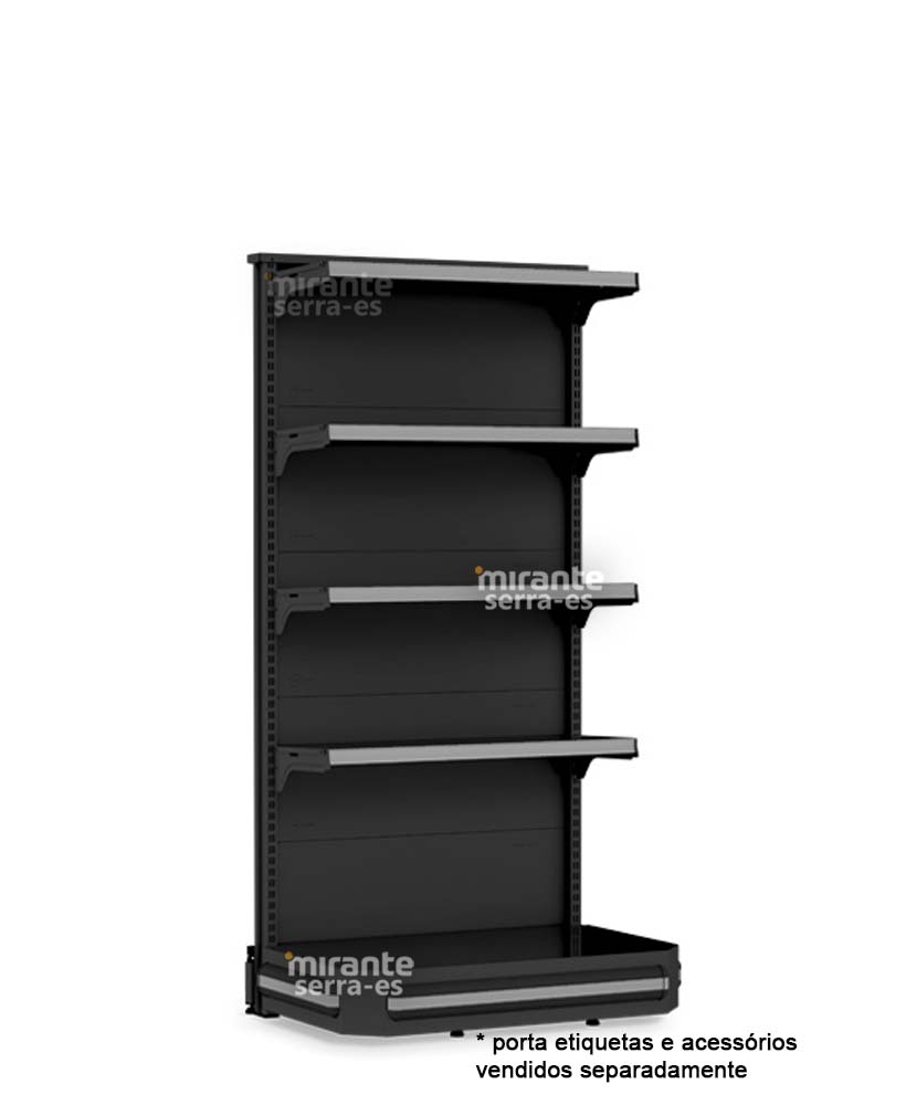 Utilizada no início e no final das fileiras de Gôndolas Centrais para tornar a loja mais atraente. Ideal para lojas de pequeno e médio porte, como mercados, mercearias, farmácias, papelarias, lojas de utilidades e outros.